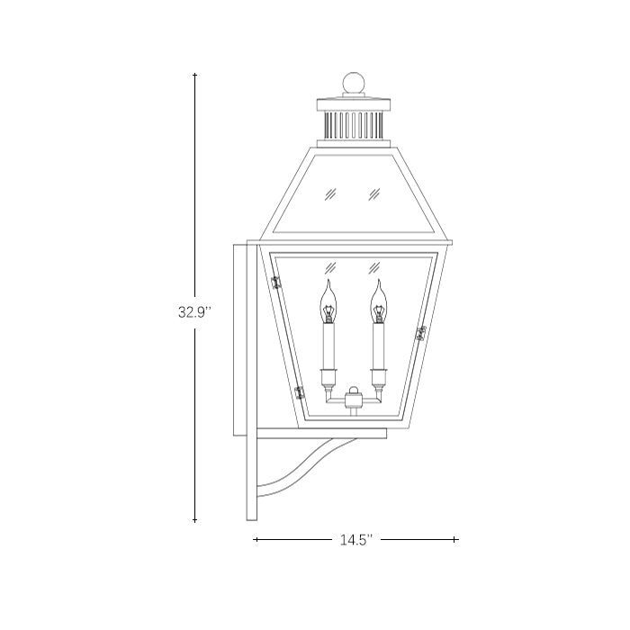 The Nimbus Outdoor Lantern combines classic heritage styling with rugged durability for exterior applications. This hexagonal wall fixture features a sturdy brass-finished frame with clear glass panels that showcase the warm glow of interior candle-style bulbs. The traditional lantern design is enhanced by a decorative finial and a robust mounting arm that projects gracefully from the wall. The transparent glass panels provide maximum light output while maintaining the timeless appeal of traditional outdoor lighting. Designed to withstand outdoor conditions, this lantern offers both security lighting and architectural enhancement for entryways, pathways, or garden walls.