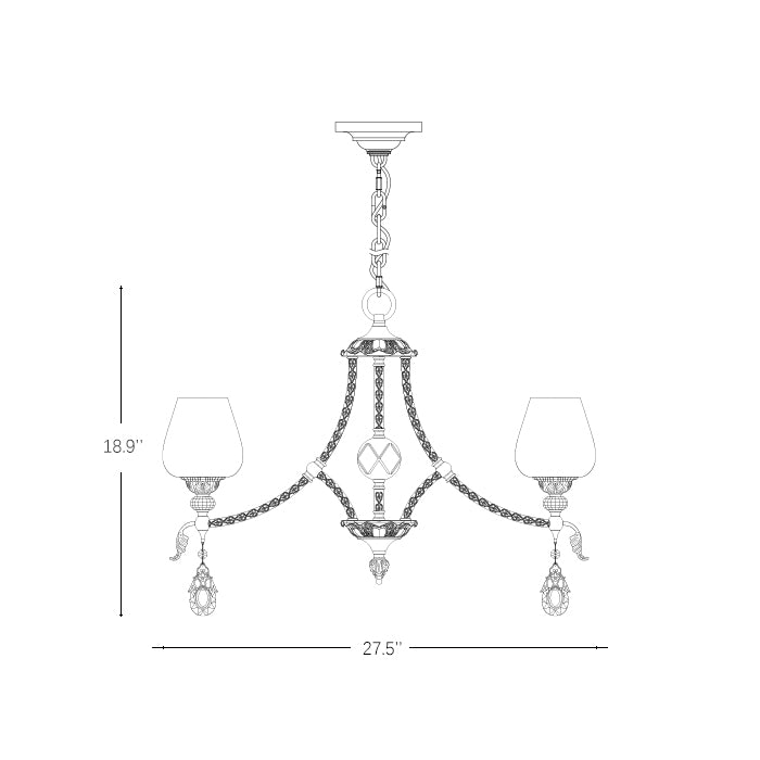 The Greta Gold Vintage Wine Glass and Crystal Chandelier effortlessly blends timeless vintage charm with opulent elegance. Crafted from solid brass with a rich, warm gold finish, its design features gracefully curved arms supporting unique crackle glass shades that resemble fine crystal. Each shade is adorned with sparkling crystal pendants, creating a dazzling play of light. The crackle glass texture softly diffuses illumination, casting a warm, inviting glow that enhances any room with a sense of luxury and sophistication. With its balanced proportions and intricate detailing, this chandelier makes a striking statement while maintaining an air of refined elegance—perfect for dining rooms, entryways, or living spaces. The included adjustable chain allows for customized hanging height to suit your ceiling perfectly.